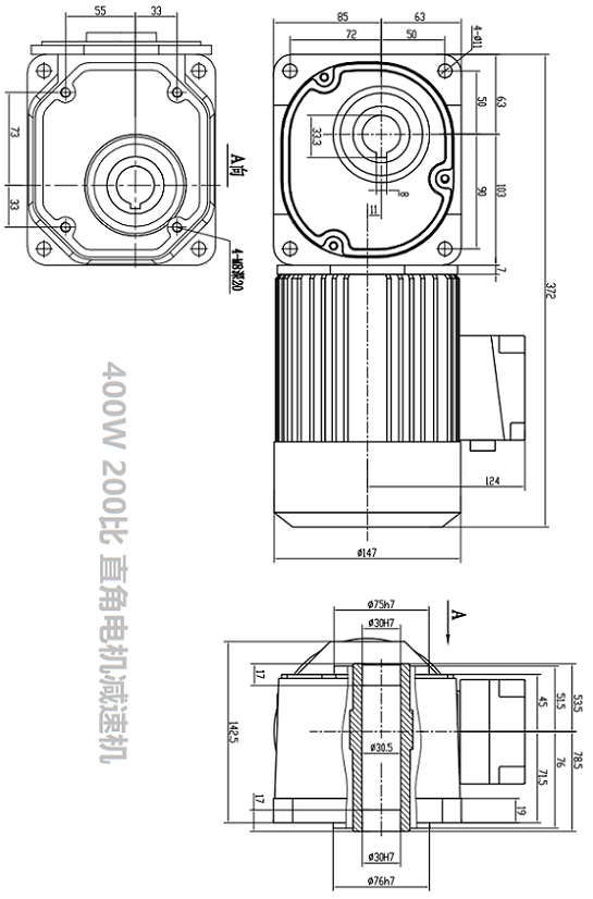 SZG30F-400W-200S-B-K-F-J直角減速機帶電機安裝尺寸圖