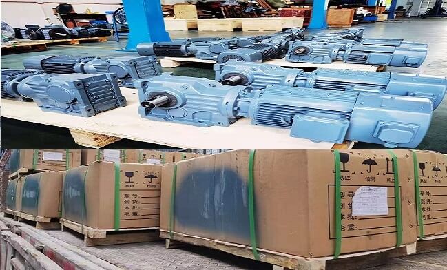 江蘇大功率直角軸減速機(jī)批量發(fā)貨,小型直角減速機(jī)我們一般建議客戶用SGF系列直角軸減速機(jī)、4KW以上大功率直角軸減速機(jī)我們建議客戶用邁傳斜齒輪K系列減速機(jī);江蘇王總節(jié)前在臥我司訂購的一批邁傳大功率直角軸減速機(jī)今天已安排發(fā)貨,請注意查收;