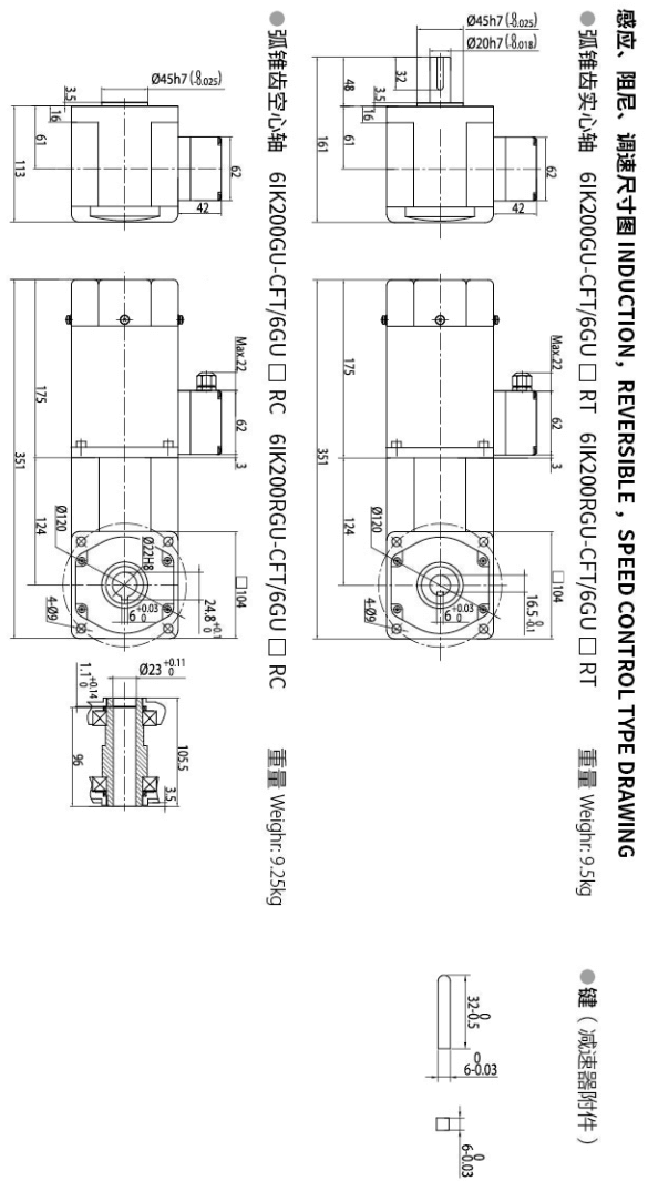 力矩電機(jī)直角中空減速電機(jī)6TK40GU-CFPT/6GU60RC空心軸減速機(jī) 尺寸圖
