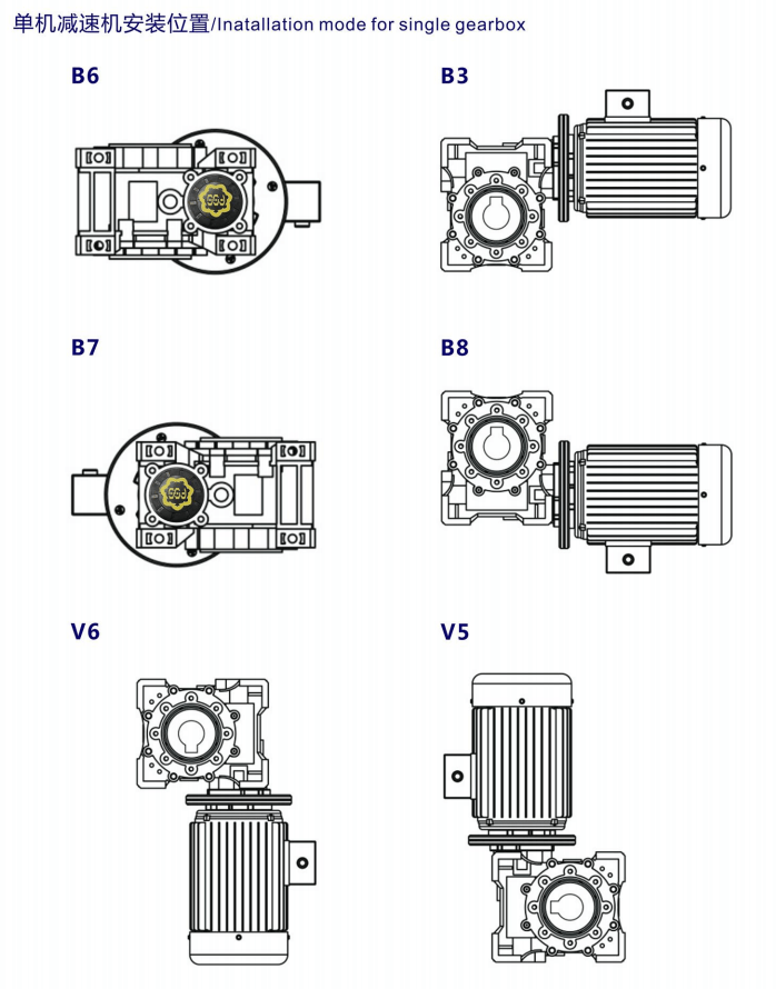 單機(jī)/雙聯(lián)中空軸直角減速機(jī)安裝方式