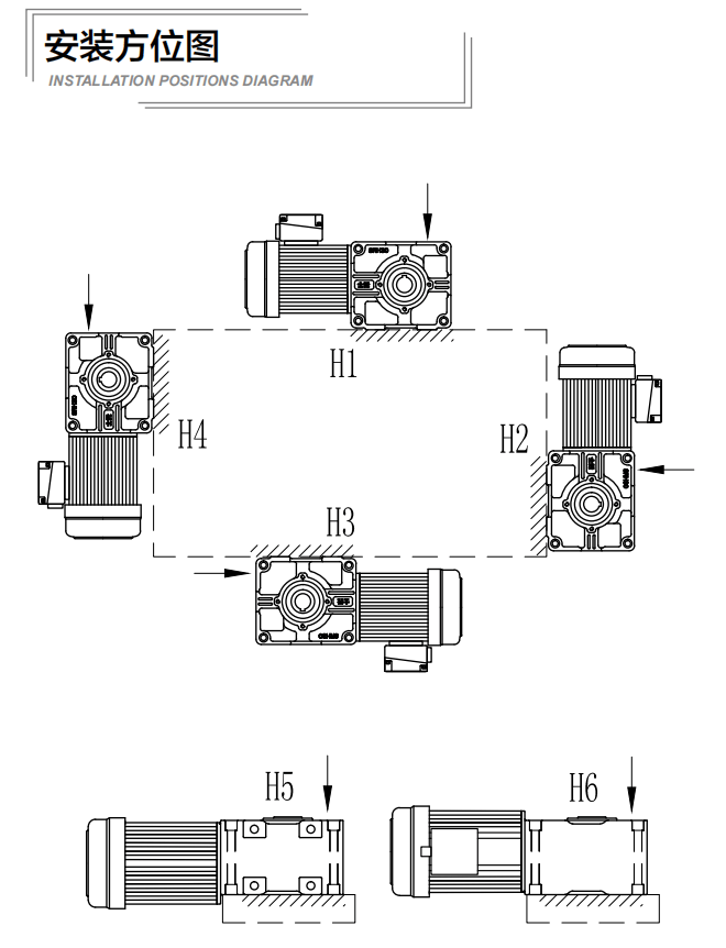 士元準雙曲面減速機H1 H2 H3 H4 H5 H6(安裝方位圖)