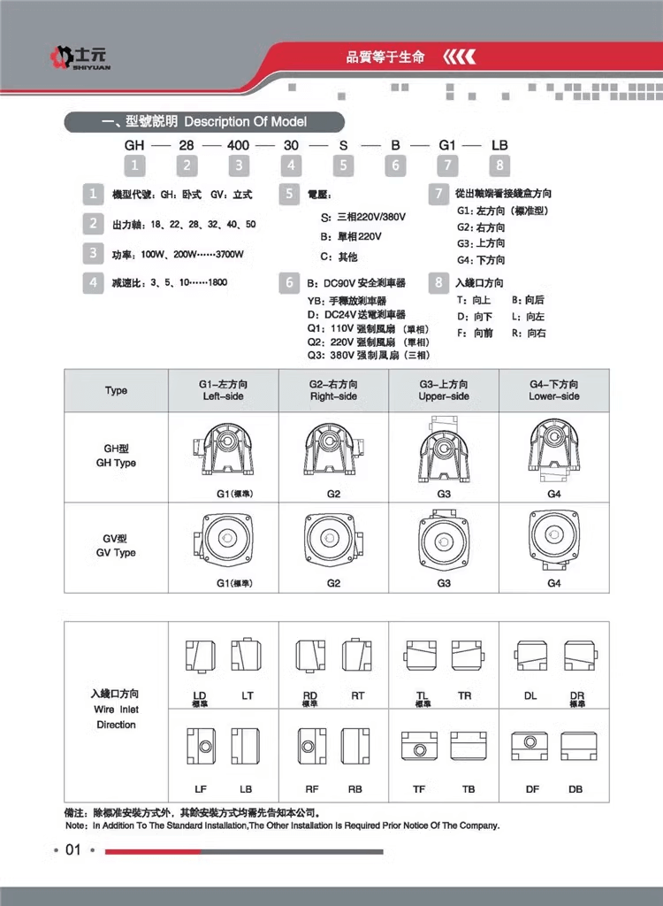- 士元S系列伺服齒輪減速馬達型號說明